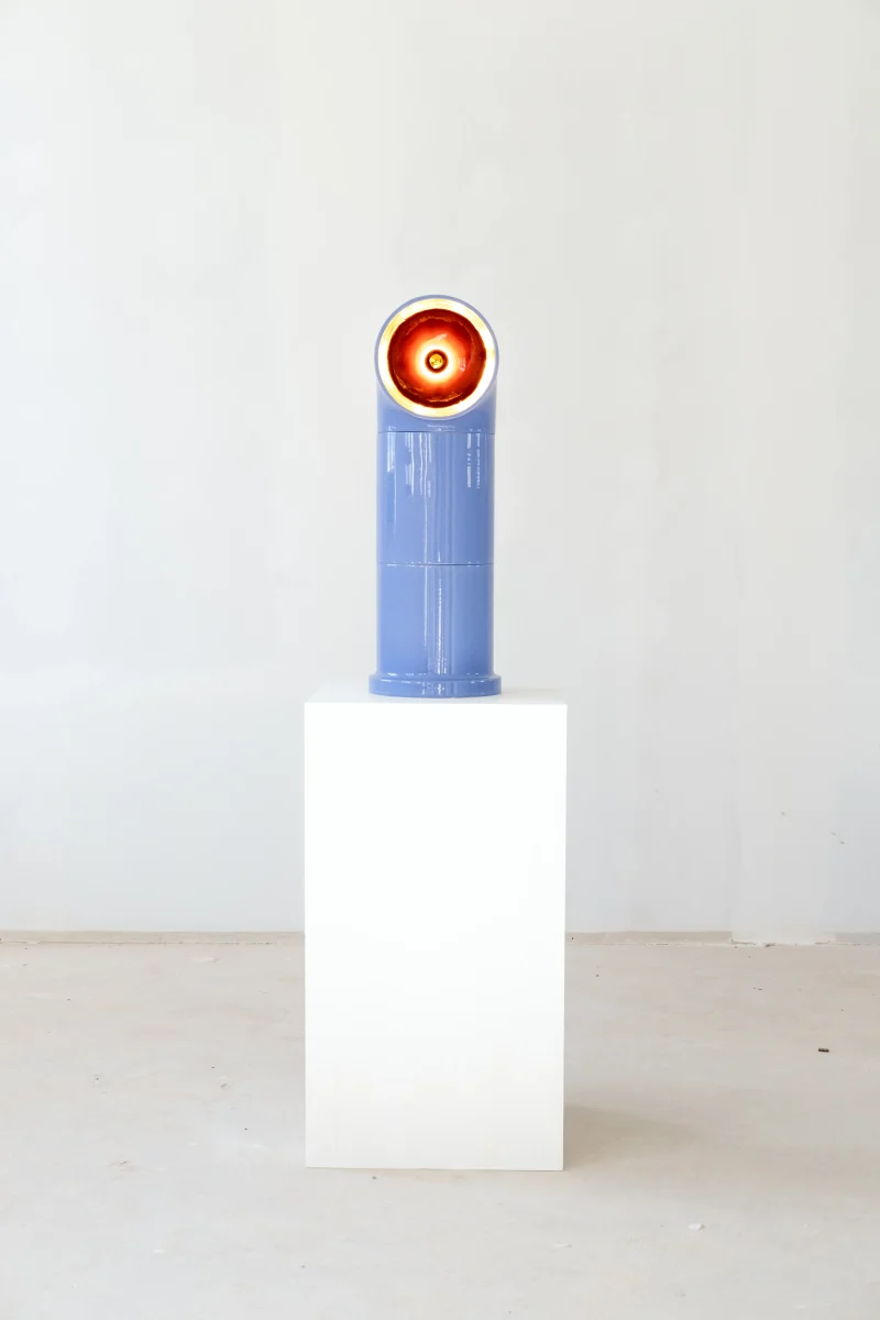 FAT OP – a standing lamp, modular and adaptable, adjusting its height to the function and needs of the user. Its massive body, evoking associations with living matter, is crowned with a concave “eye” in a contrasting color. When the bulb is lit, the eye fills with light, revealing the essence of the hidden color. The light of FAT OP is directed inward, highlighting the material beauty of the ceramic surface and the captivating depth of the glazes’ colors.