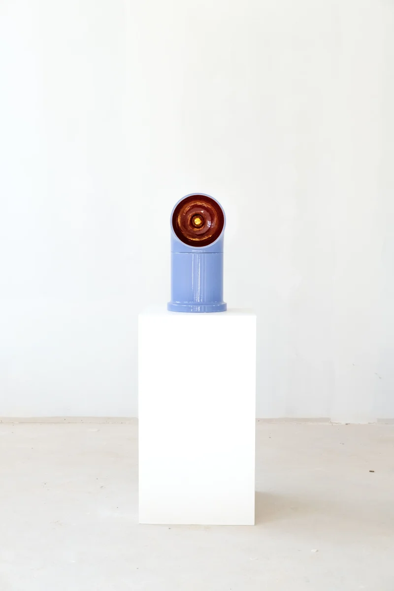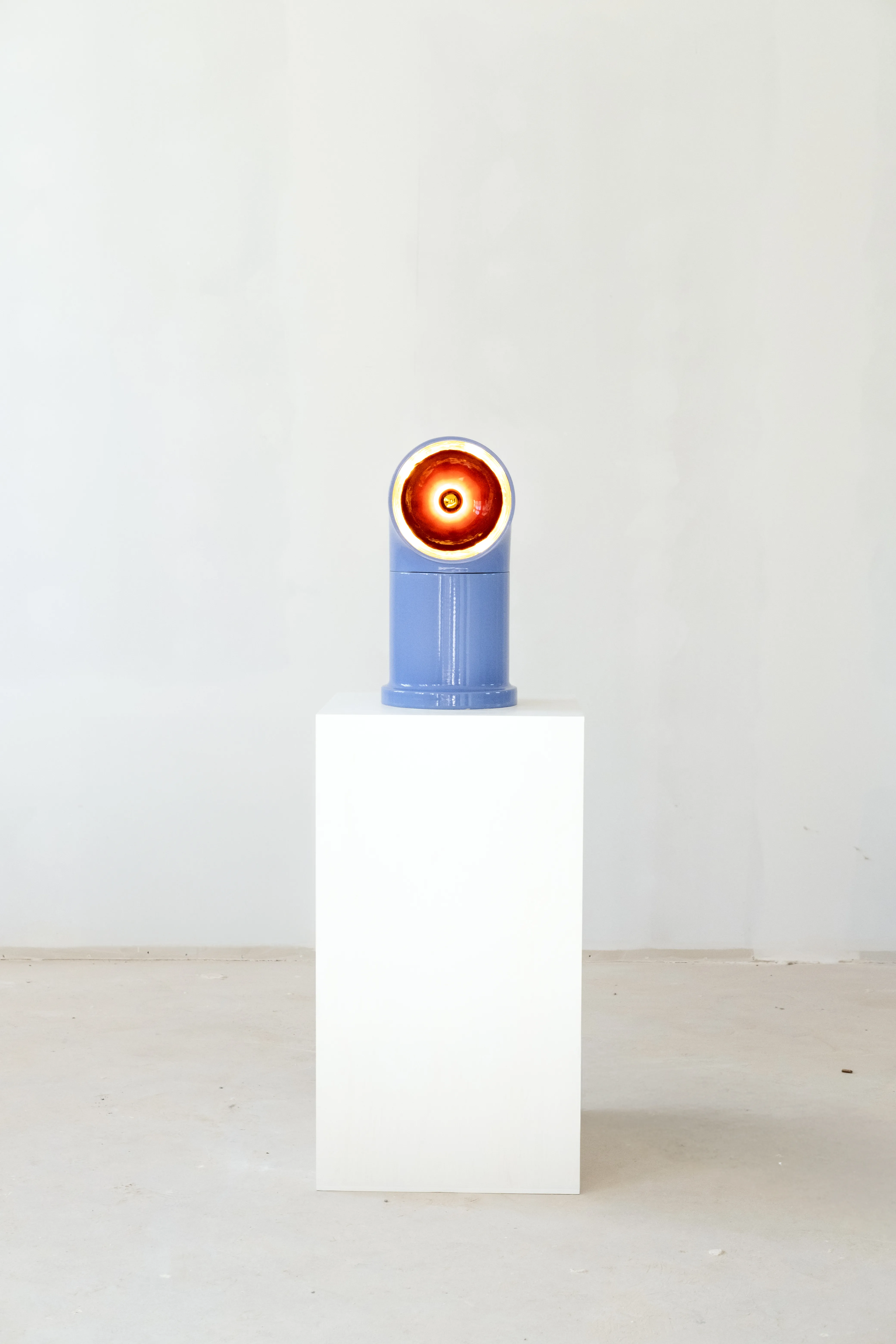 FAT OP – a standing lamp, modular and adaptable, adjusting its height to the function and needs of the user. Its massive body, evoking associations with living matter, is crowned with a concave “eye” in a contrasting color. When the bulb is lit, the eye fills with light, revealing the essence of the hidden color. The light of FAT OP is directed inward, highlighting the material beauty of the ceramic surface and the captivating depth of the glazes’ colors.
