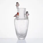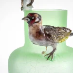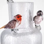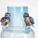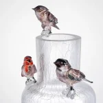 In the Feather Animals collection, I was inspired by endangered bird species found in the Czech Republic. Birds such as the hawfinch, the goldfinch, the blue tit and others are perched on the surface of the vases. The vases themselves are based on my significant Garden collection. For Feather Animals, I chose a cracked surface for the vases with subtle color transitions evoking the individual seasons. The fine web of cracks even more strongly thematizes the fragility and vulnerability of the natural environment.