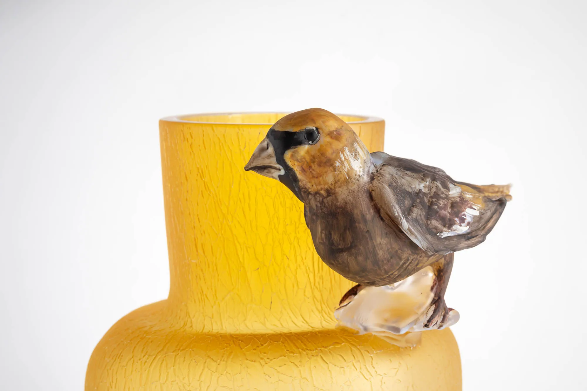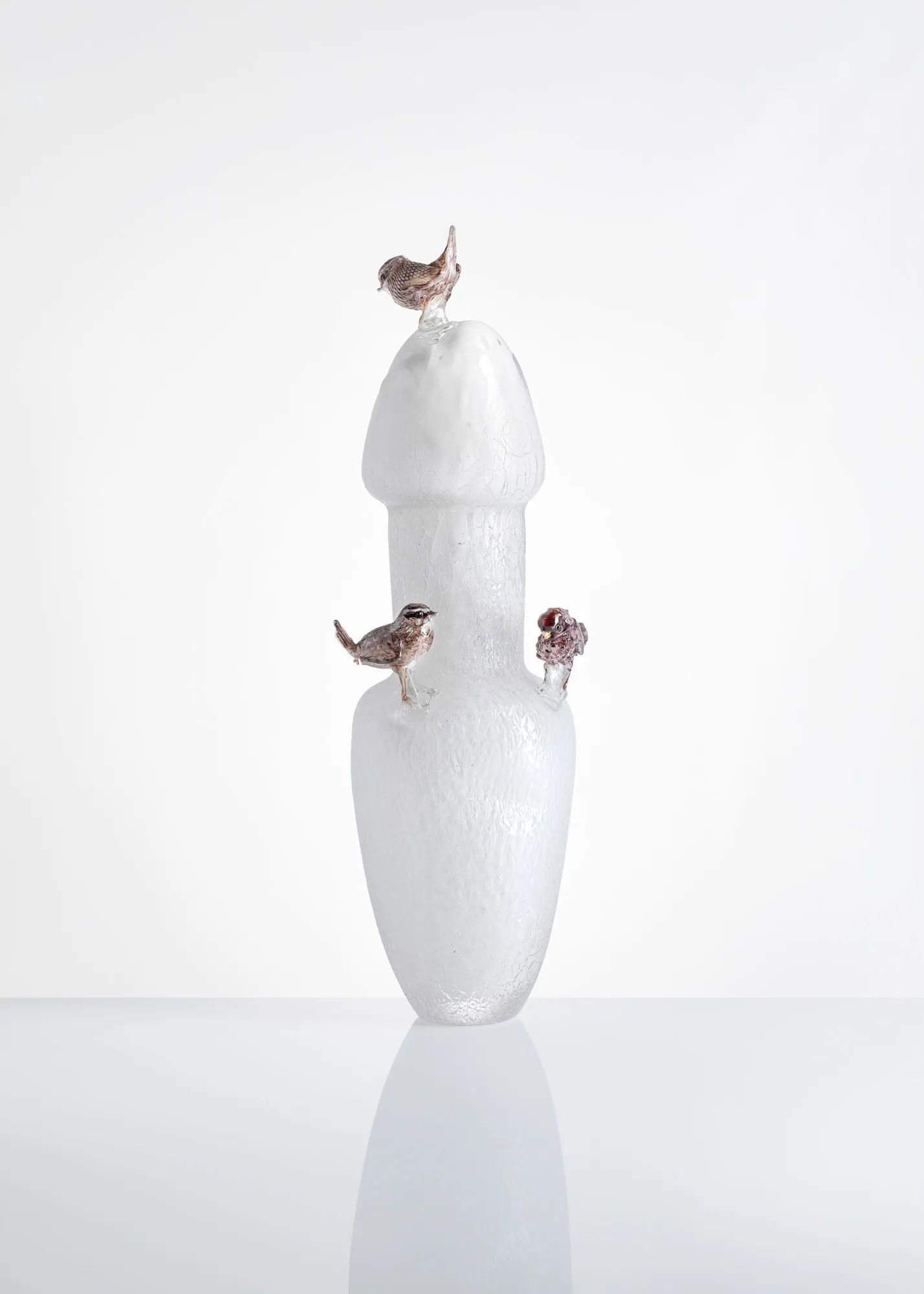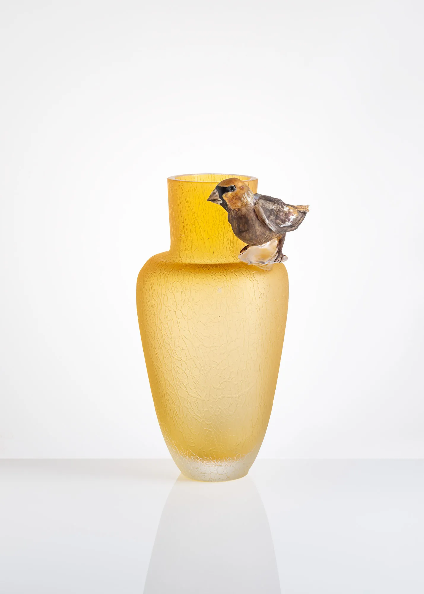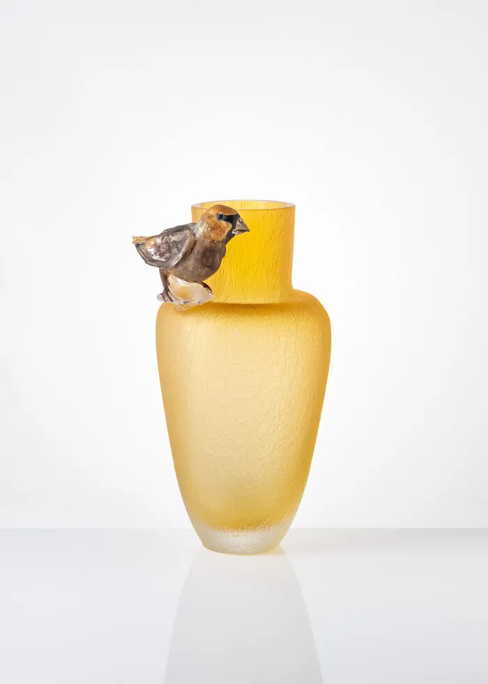 Vase as a work of art. Inspired by endangered bird species and habitats.