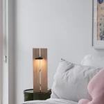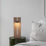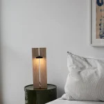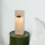 The Fence Light by Canadian designer, Calen Knauf, is an eclectic, sculptural yet adjustable table light. The Fence features a minimalist oak base and vertical uprights that hold the luminaire at a desired height and angle. The protruding head is pleasant to the touch, inviting the user to move and tilt it within the slot between the uprights. The power cable emerges from the base and gracefully curves upwards, disappearing into the luminaire like the stalk of a budding plant.