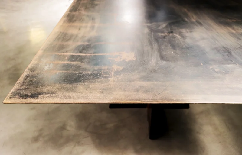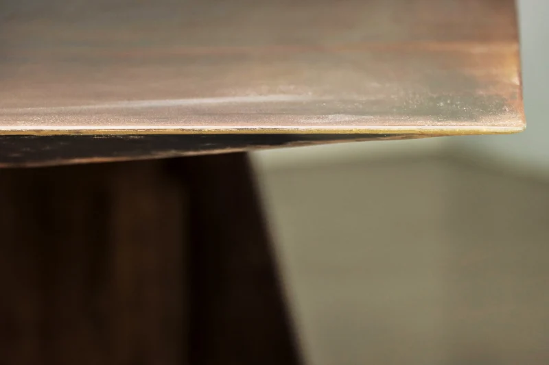 The Fierro Table by Costantini Design is a variation on our signature Luca Table. Instead of a matching Argentine Rosewood top, Costantini complements the twin pedestals with a metal top, sealed so to preserve the naturally formed patina from the industrial processes in the fabrication of the top or left unsealed so that the patina can develop over time.