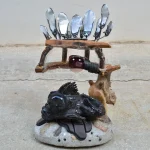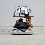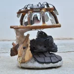 ‘Fiji Mermaid’ not only illuminates but also invites reflection on the nature of belief and evidence. The Fiji Mermaid was once hailed as proof of a mythical creature, only to be later discredited. This lamp, in its eclectic materiality, serves as a modern-day reminder of how our understanding of history and truth is subject to the interpretations and tools of each era.