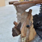 The incorporation of 3D-printed components and resin allows for intricate detailing, while wood and sawdust composite lend an organic warmth to the piece.