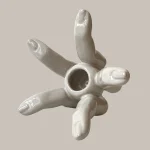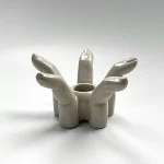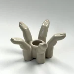 Ceramic candle holder, sculpted by hand (every finger was sculpted separately and then was formed into the desired shape). One layer of fingers, inspired by the blooming process of flowers.