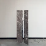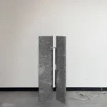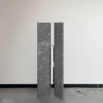 The steel structure that makes this future reuse of the stone possible is deliberately left rough. With visible traces of the laser machining it underwent, it retreats into the background and is obedient to what it clamps down. What was in danger of becoming waste thus regains a dignified place. From a deep respect for the material, a new story emerges.
