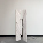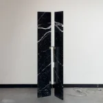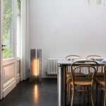The stones thus become more than they were before. They do not lie in mortar or hang glued to a support but stand proudly upright and carry the structure that sheds light on their natural beauty. In this, they are unusually “independent”, as most designs that use stone tend to fixate them to other materials. For us, that independence is crucial, since it also ensures that the stones can have other future lives. With nothing more than a screwdriver the pieces can be detached again without any damage to the stone.