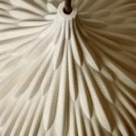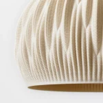 With an overall volume embodying the essence of a water drop, the Flax lampshade pays homage to the flax plants’ remarkable adaptability to thrive with minimal water resources. A bouquet of refined protuberances evoking flax leaves elegantly grace its surface contributing to the lampshade’s durability through intricate folds that enhance structural robustness.