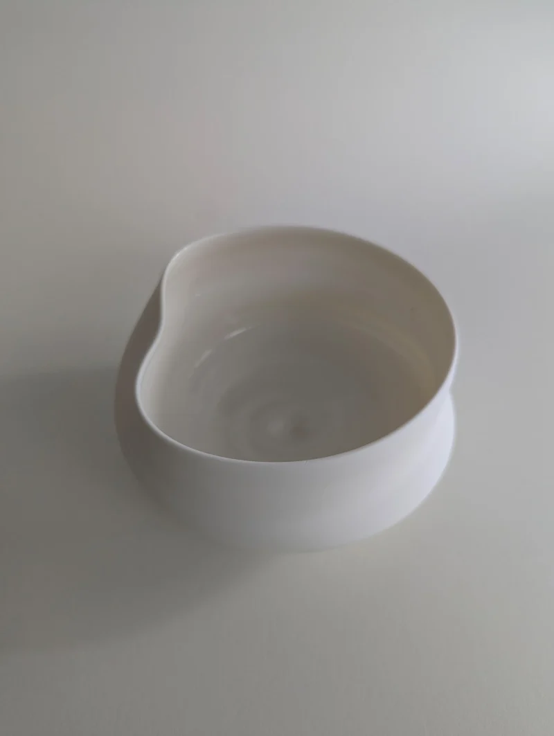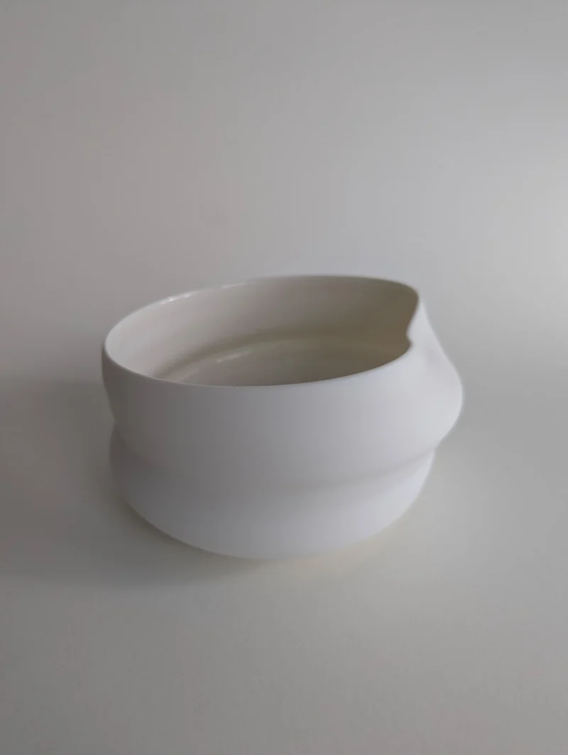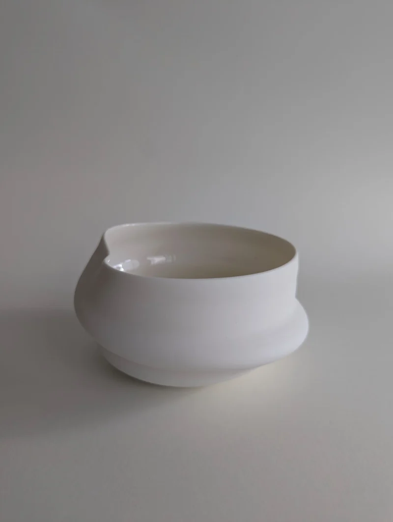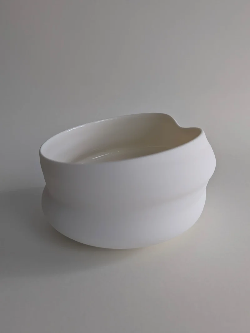 The FLEUVE sculptural drinking vessels are a contemplation on giving space for the unpredictable and overflowing. Each one of the erratically hand-thrown vessels comes with its own unique expression, yet resonates with the others in the larger gathering. Playing with the physical forces that shift throughout the dynamic, complex working process, the artist gently accompanies the pieces to their individual state of completion, letting the clay body express irregularities and aberrations. Beauty can be found in the “imperfect”, and grace and magic in the moment when volatility and control are flowing in balance. The fired porcelain piece remains, holding the memory of this extraordinary state.