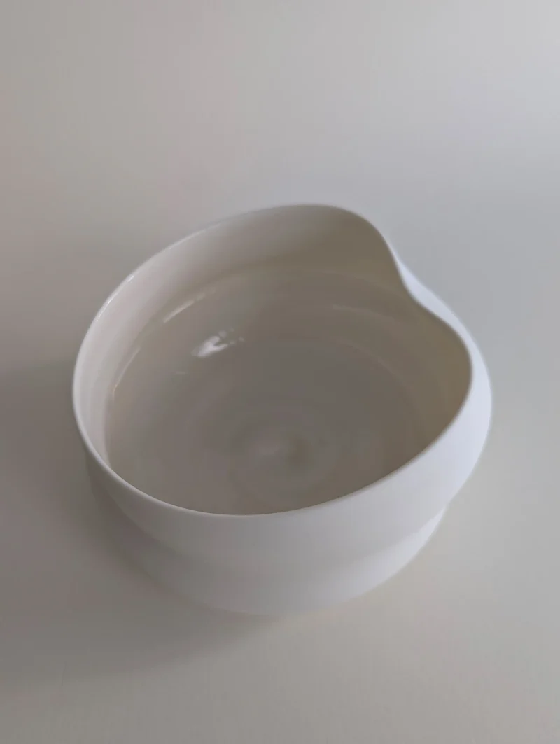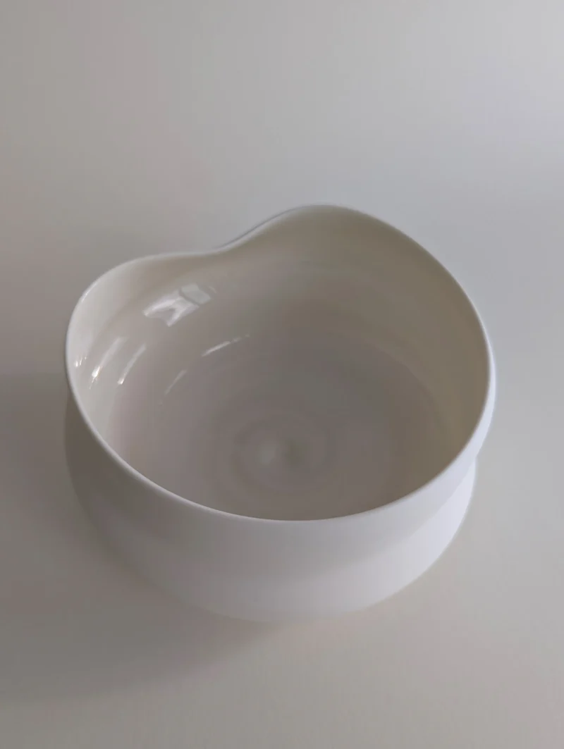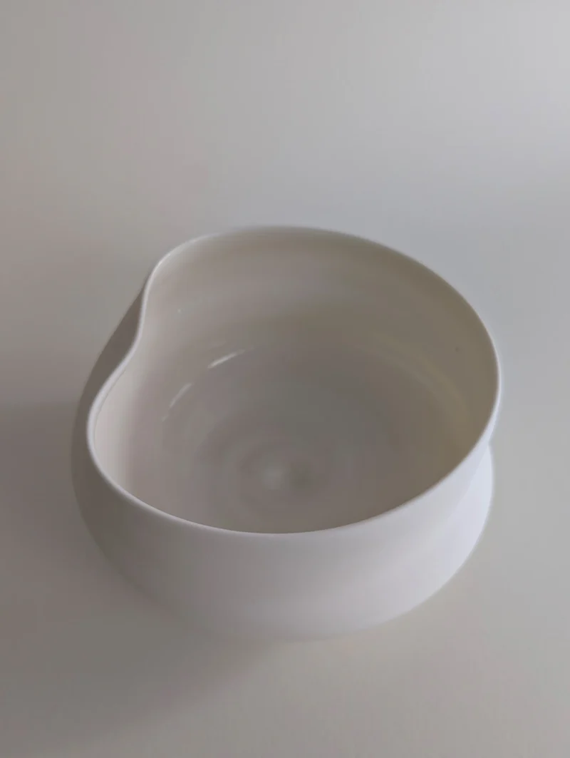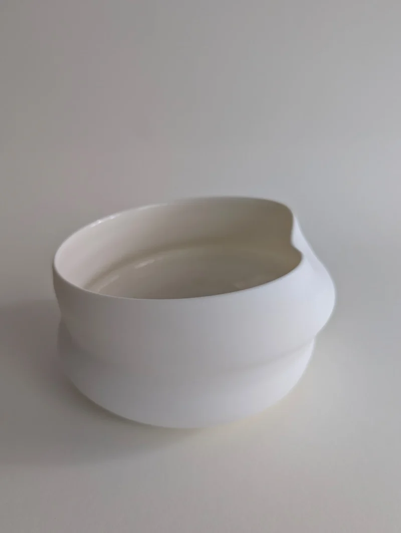 The FLEUVE sculptural drinking vessels are a contemplation on giving space for the unpredictable and overflowing. Each one of the erratically hand-thrown vessels comes with its own unique expression, yet resonates with the others in the larger gathering. Playing with the physical forces that shift throughout the dynamic, complex working process, the artist gently accompanies the pieces to their individual state of completion, letting the clay body express irregularities and aberrations. Beauty can be found in the “imperfect”, and grace and magic in the moment when volatility and control are flowing in balance. The fired porcelain piece remains, holding the memory of this extraordinary state.