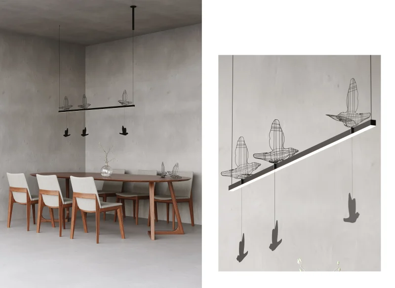 This luminaire is more than just a lighting fixture. It is a philosophical sculpture that explores the dynamics of form, the transformation of consciousness, and the depth of human memory.