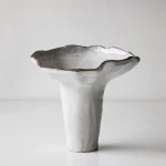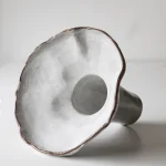 This handbuilt ceramic vase is part of the Floral Studies series – a personal exploration of natural forms and the gentle beauty of blooming flowers. Covered with a soft white glaze, the surface is not perfectly smooth or uniform, but full of subtle variations that show the work of the hands that shaped it.