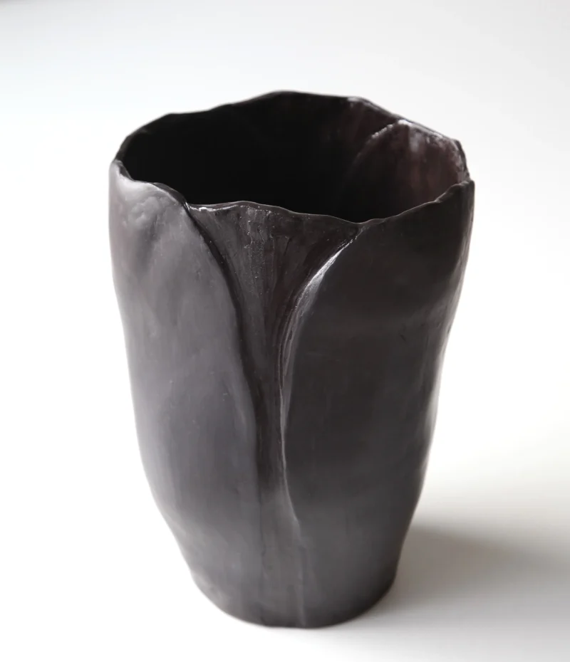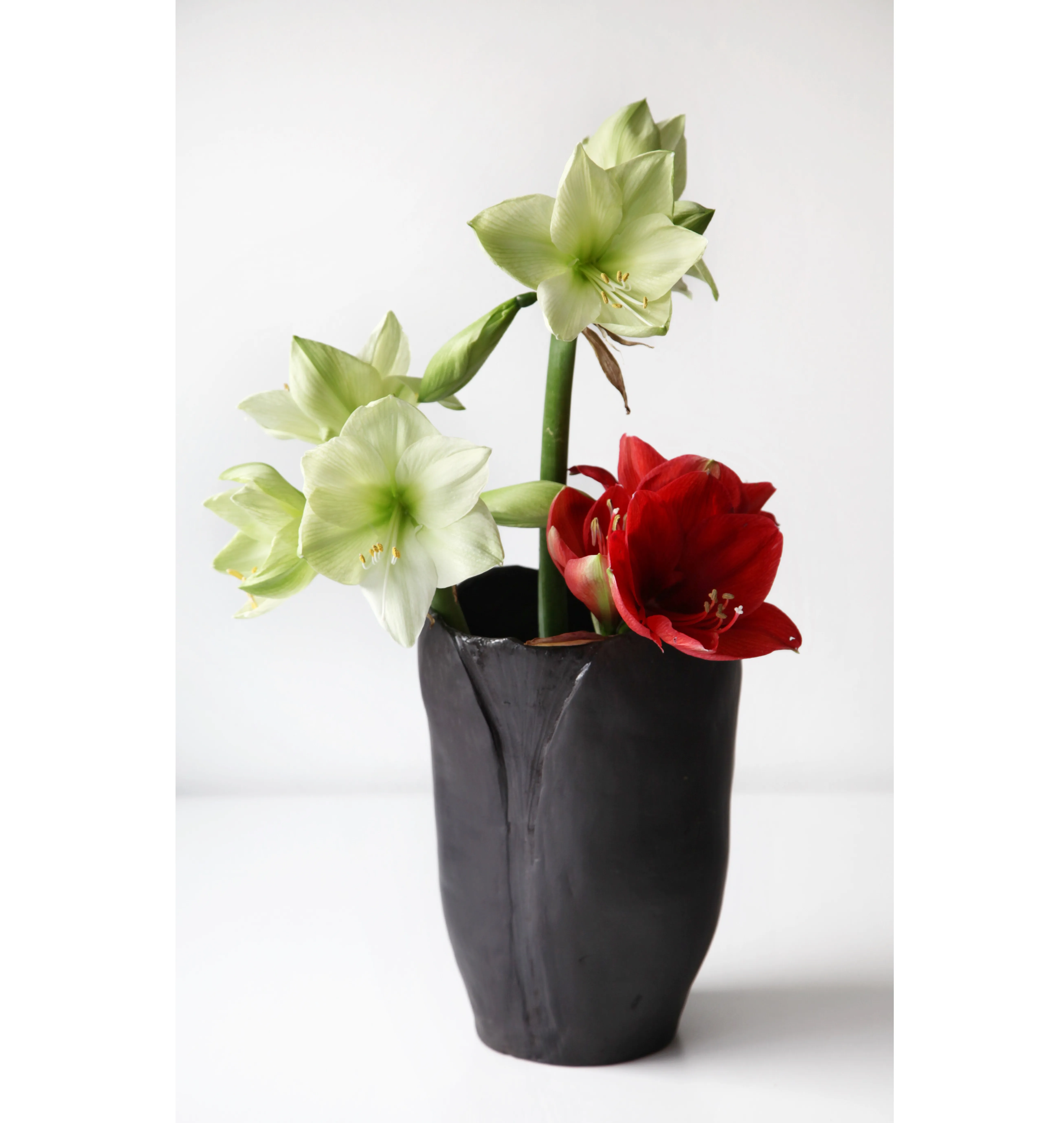 Part of my ongoing Floral Studies series, this piece explores the tulip as a sculptural form. Handbuilt from black stoneware, the vase has an intentionally organic, imperfect shape, making every work in the series truly one of a kind.