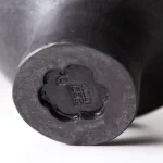Handbuilt from black stoneware. Unglazed, hand-polished exterior with subtle glazed accents; transparent glaze inside. Fired at 1250°C. Waterproof and suitable for fresh flowers.