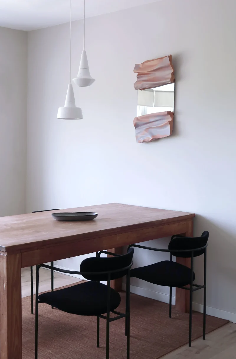 In today‘s world, where uncertainty seems to be the norm, it can be challenging to find acceptance in the unpredictable. For the design of the FLOW Light, Jule Cats challenged herself to embrace the idea that sometimes the unplanned can lead to exciting outcomes. The shape of the design embodies this idea, taking its inspiration from the fluid, unpredictable shapes that time can take. It is a celebration of the beauty that can be found in letting go and moving with the flow, even when things seem uncertain. For this series, only natural materials are used, and due to its handmade nature, each piece differs slightly in shape.