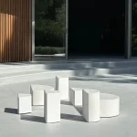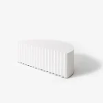 NUMY is a semi-circle-shaped design object with folds formed on its straight side. It beautifully complements KOGA with its slightly shorter but larger-radius shape. NUMY seamlessly harmonizes with KOGA and adds an extra layer of functionality and aesthetics to the collection. Like its counterpart, NUMY effortlessly transitions between different roles, serving as a stool, a coffee table, a side table or an art object that forms a circle piece when paired with itself. Whether used in combination with other FOLDS objects or on its own, NUMY brings a cohesive aesthetic to any space, inviting users to explore and reimagine the possibilities of form and function in their interior decor.