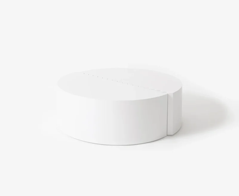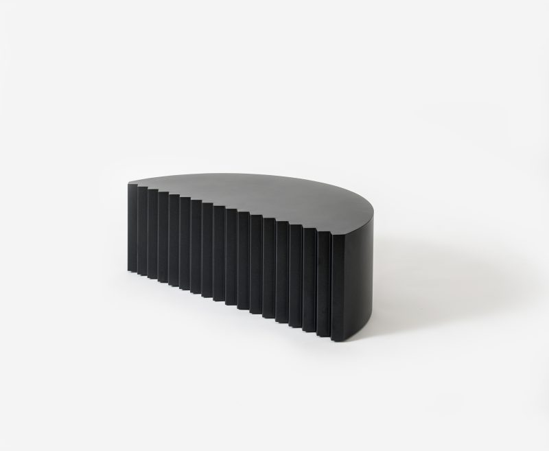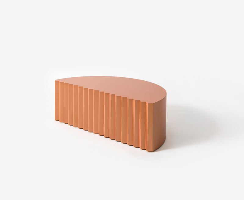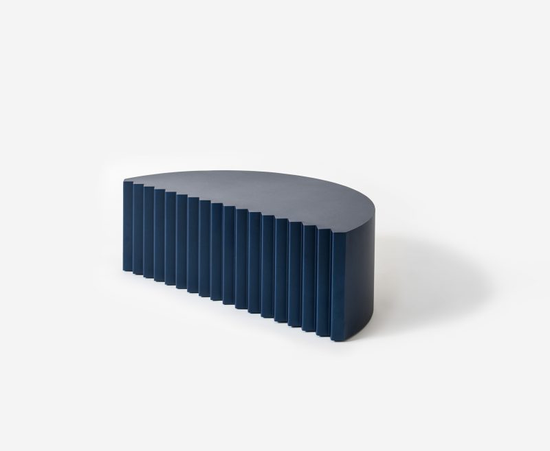 NUMY is a semi-circle-shaped design object with folds formed on its straight side. It beautifully complements KOGA with its slightly shorter but larger-radius shape. NUMY seamlessly harmonizes with KOGA and adds an extra layer of functionality and aesthetics to the collection. Like its counterpart, NUMY effortlessly transitions between different roles, serving as a stool, a coffee table, a side table or an art object that forms a circle piece when paired with itself. Whether used in combination with other FOLDS objects or on its own, NUMY brings a cohesive aesthetic to any space, inviting users to explore and reimagine the possibilities of form and function in their interior decor.