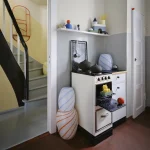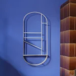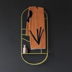 The FOLDWORK VALET is a crossbreed between a wall sculpture, inspired by half-timbered constructions, and a valet stand aka. clothes horse. It hangs on the wall, has a shelf for accessories, an arch for jackets and a hanger which can be folded out to provide more space for clothes.