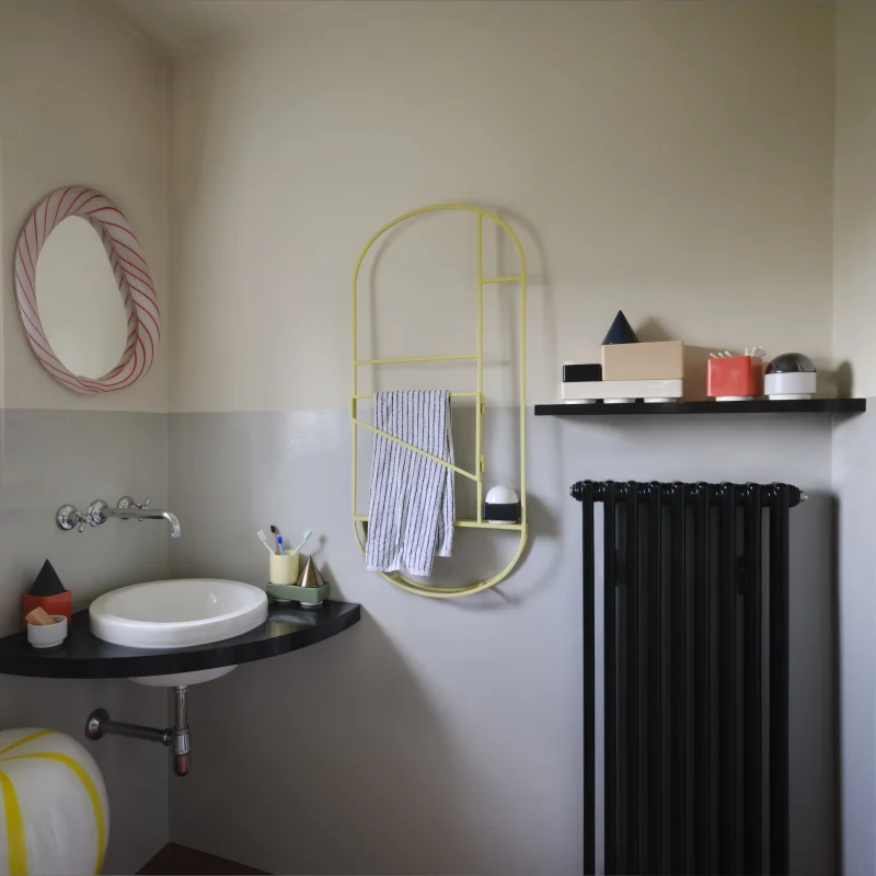 They come in black, blue, red, yellow and beige in steel, as well as in brass and arrive with three brass screws to mount it to the wall.