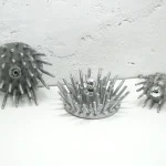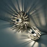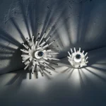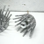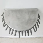 Foret is a work of exploration in cast aluminum. The object, whether a lamp or a shelf, is drawn into the sand mould by hand using a drill. It’s a return to slowness, where randomness has a real place in the object’s purpose. Each lamp has a different number of prongs, each of slightly varying length, due to the manufacturing process. The most appropriate way to use and install the lamp is either directly on a piece of furniture, or fixed as a wall lamp.