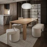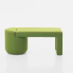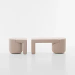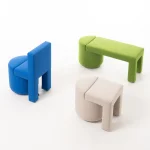 This is a story about monolithic forms and vivid visual diversity, where the furniture organically combines two timeless interior elements: an armchair (chair) and a pouf.
