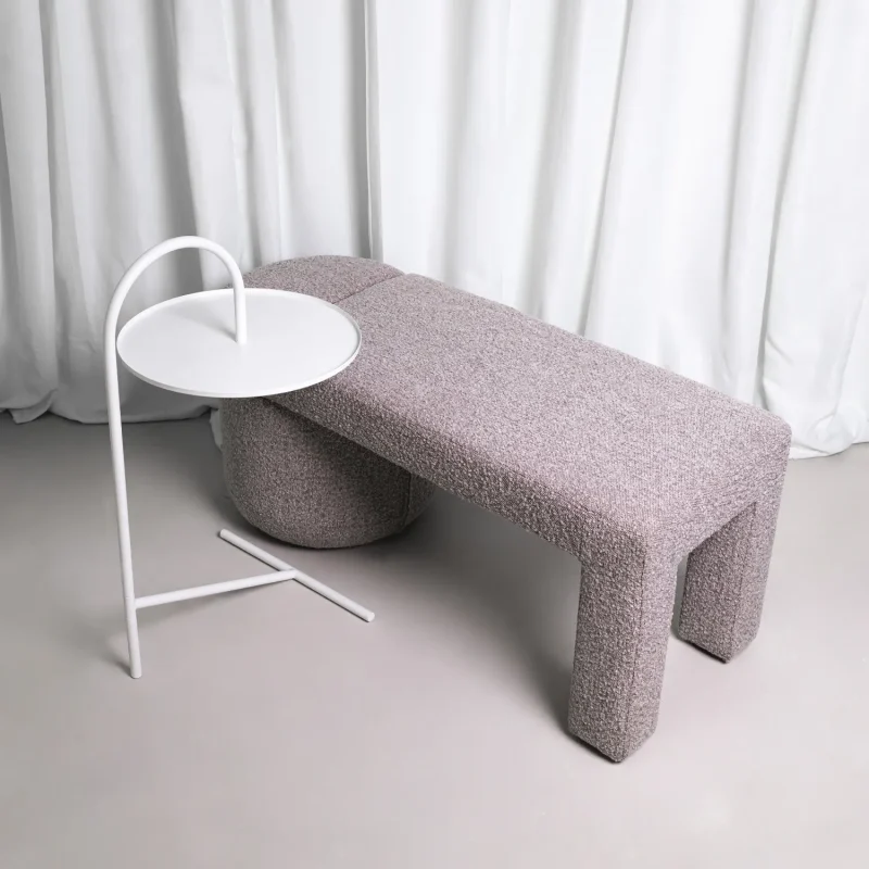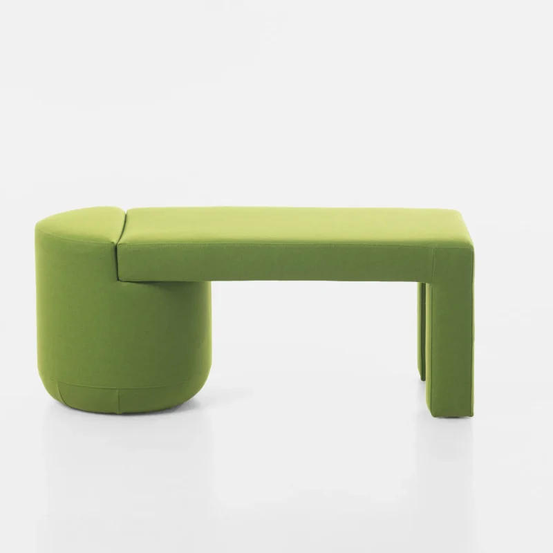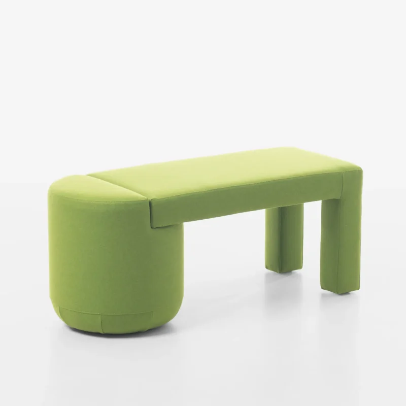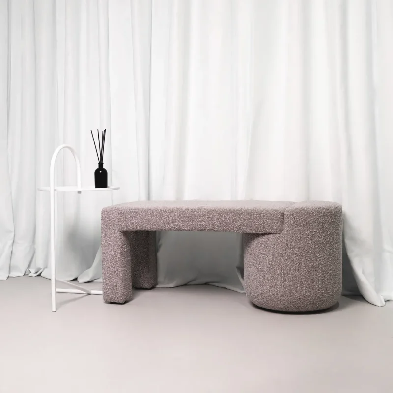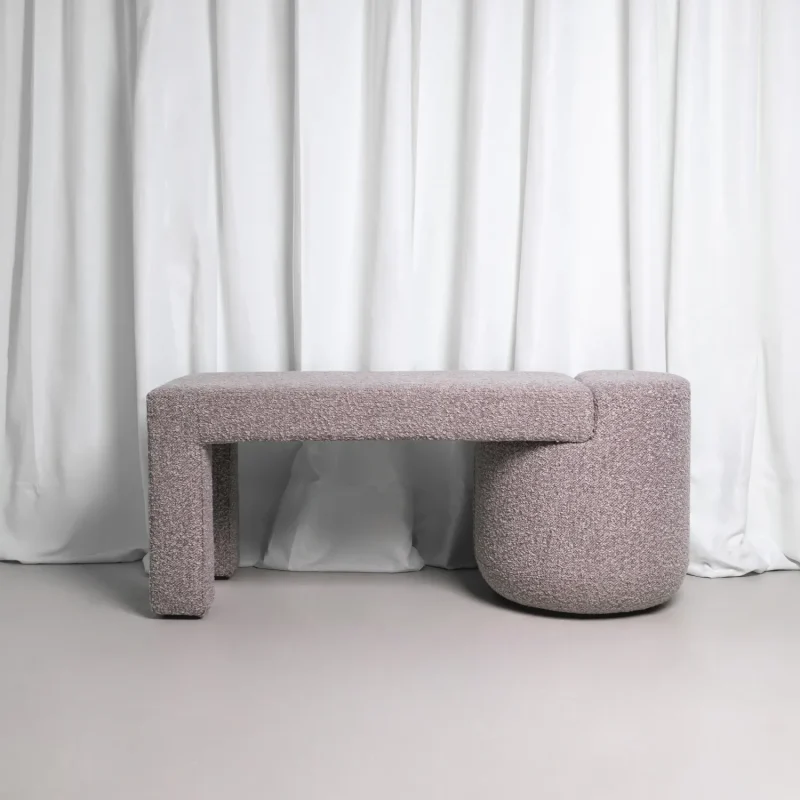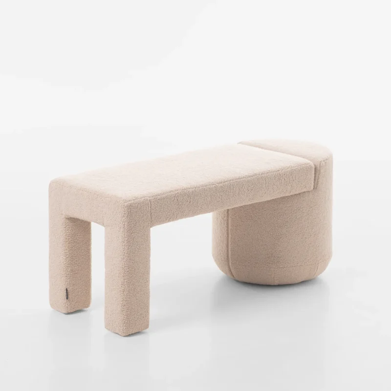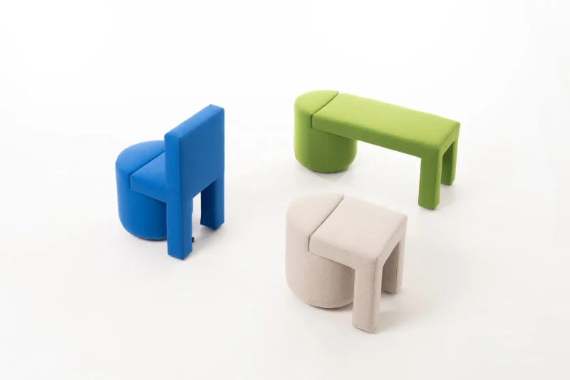 This is a story about monolithic forms and vivid visual diversity, where the furniture organically combines two timeless interior elements: an armchair (chair) and a pouf.