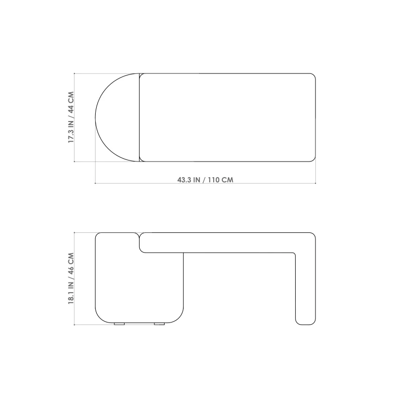 | Dimensions LxWxH | 44x110x45cm (17x43x18'') |