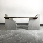 Rooted in our practice, we regularly create concrete objects, using our specialized reinforcement techniques. Inspired by unique materials and Japanese design principles we wanted to incorporate antique wood into our design, to add warmth and character. As a result this bench was brought to life, using fragments of antique Italian chestnut floors, giving them a new life, while also using their features to direct the design process of a modern counterpart, using uniquely shaped concrete.