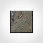 Available in various stunning varieties, our choice for this version is the captivating Rain Forest marble. Each piece tells a unique story through its touch and appearance. Rain Forest marble, an uncommon and almost choreographic Indian marble, offers two distinct color variants: Rain Forest Green and Rain Forest Brown. Classified as a serpentinite, this metamorphic rock showcases a mesmerizing design reminiscent of a snake’s skin. It is formed through a series of chemical and mechanical reactions at relatively low temperatures, creating a distinctive material that originates from the ocean floor and rises to the surface. The name “Serpentinites” draws inspiration from the word “snake,” reflecting their characteristic reticulated design and a tendency towards green hues.