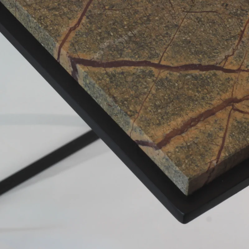 Frame is a minimalist side table thoughtfully crafted by Italy-based design studio, DFdesignLab, with the express purpose of accentuating the beauty of the marble/stone top. The leg structure is ingeniously designed to emulate a Piet Mondrian painting in a 3D frame, bringing a sense of modernism to the classic material.