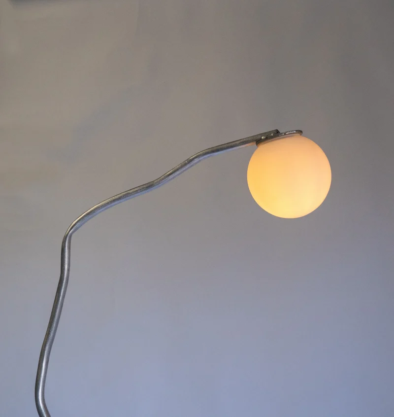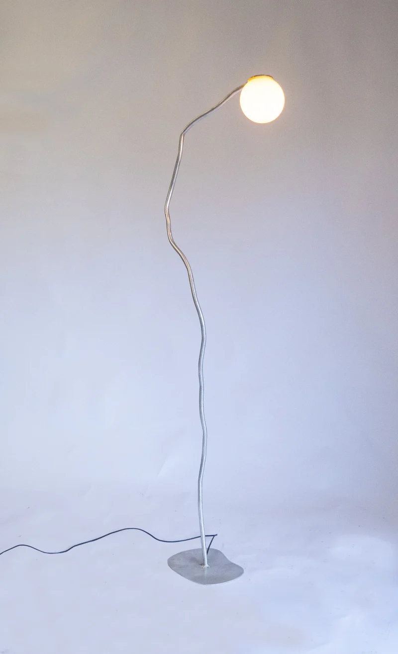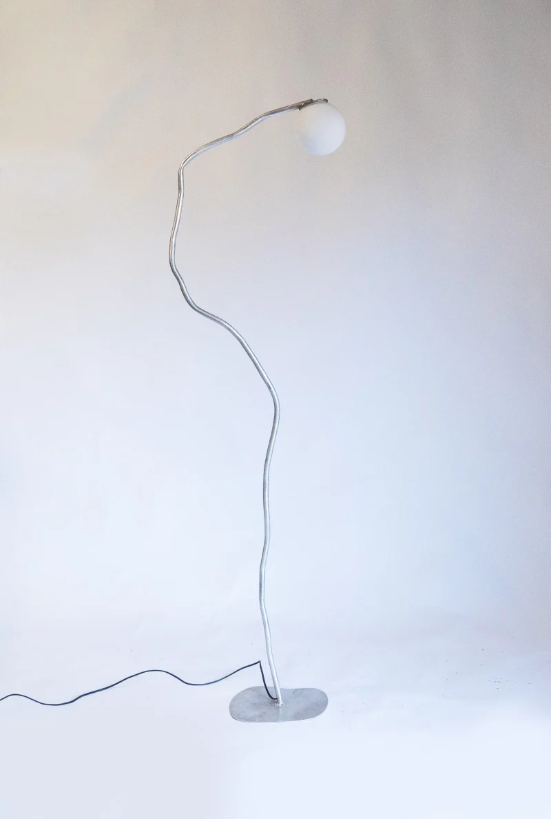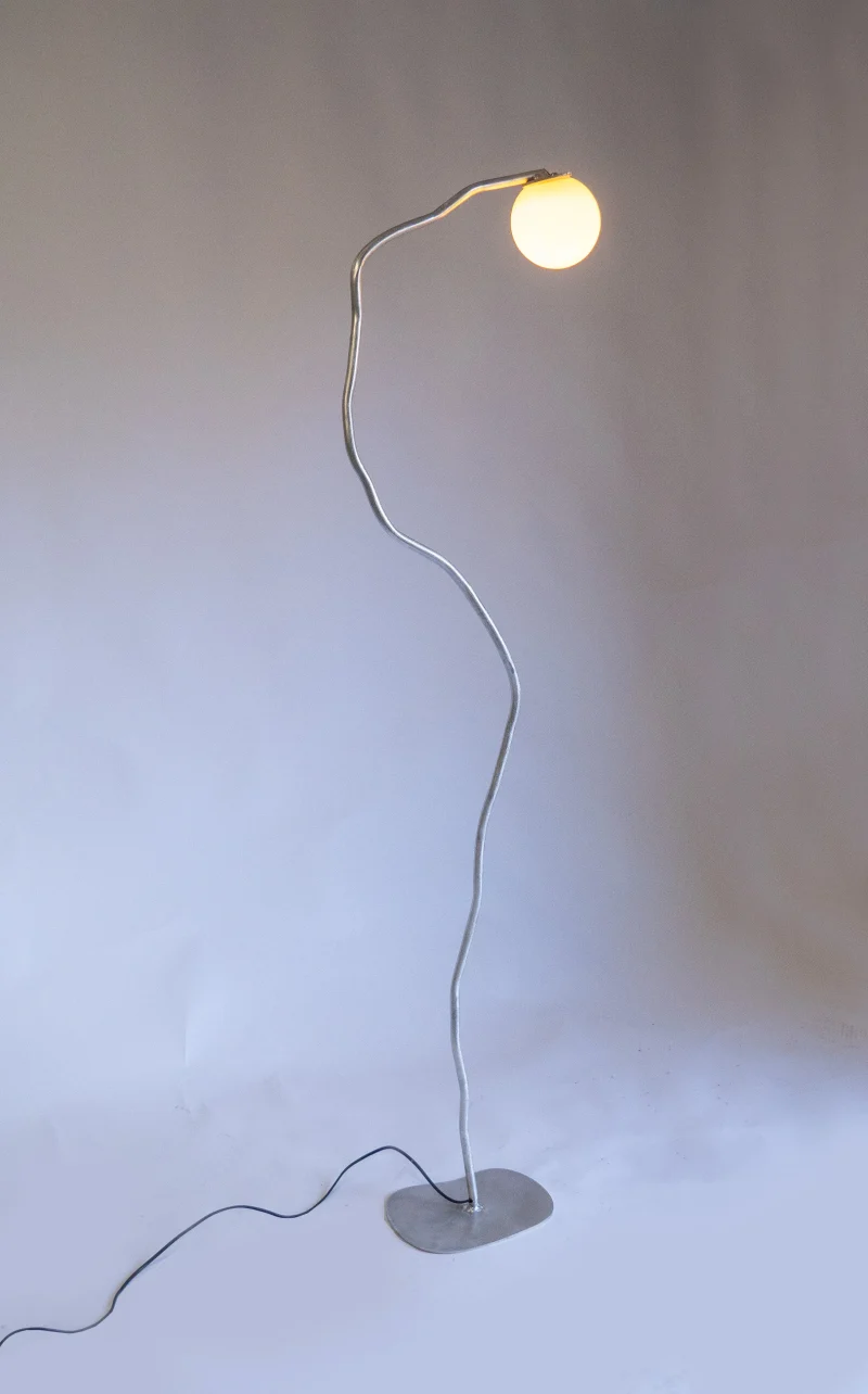 The lamp’s organic form is intended to bring the feeling of the natural environment into the home. The designer wants the pieces to create an atmosphere within a room that is tactile and expressive. In Six Dot’s signature raw aluminium, the piece blends seamlessly into any colour pallet or interior. At each stage of the design there was a commitment to showing the hands of the maker in the piece, each grind mark, scratch and scuff revel a story about the tools and hands that created the piece.