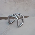 The “Fringefloss Stool” is a stainless steel stool by Andrea Santivanez that can be used with its tailored seat cushion (“Fringefloss”) that was translated from a traditional and extinct carpet in Southern Sweden.