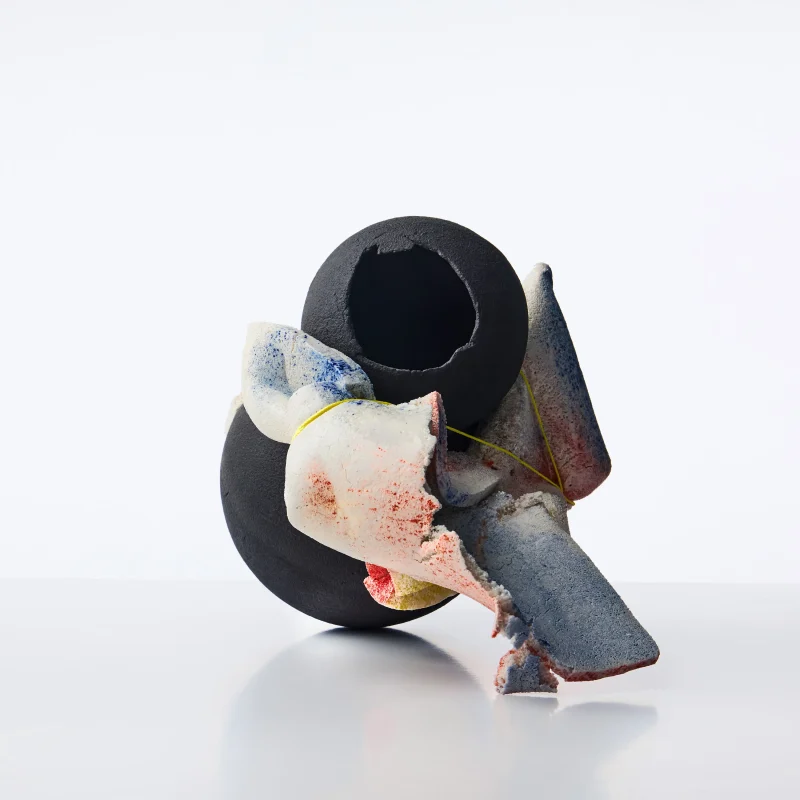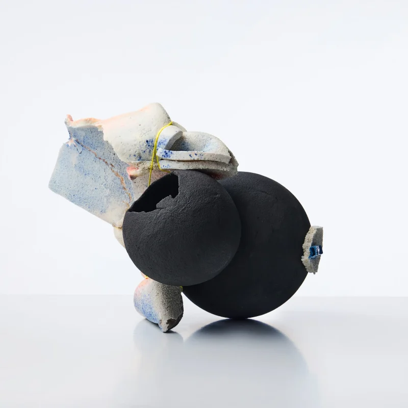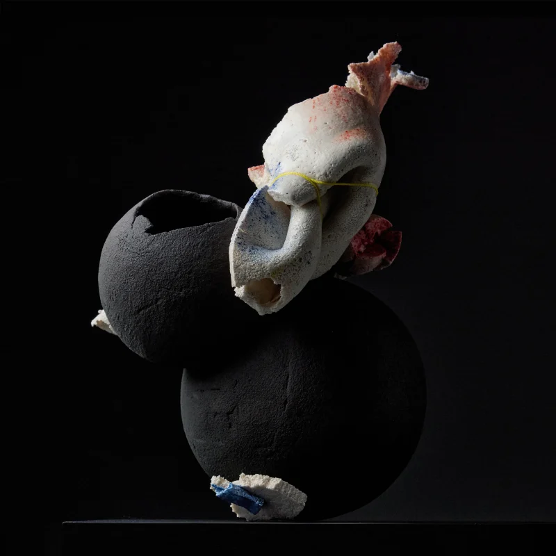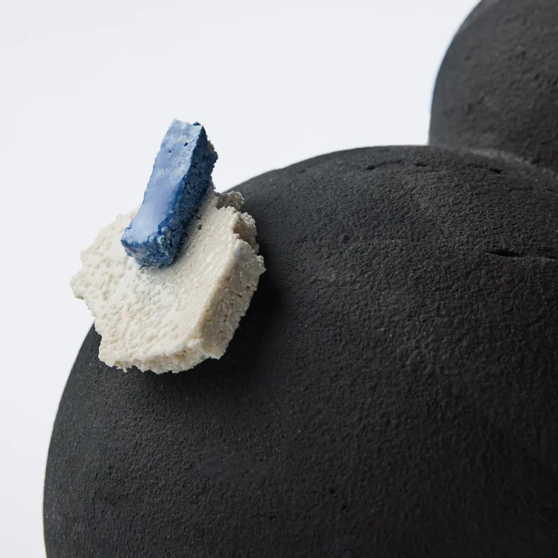 This ceramic sculpture is a striking decorative piece that blends the raw beauty of high-temperature black clay with the elegance of glazed porcelain.