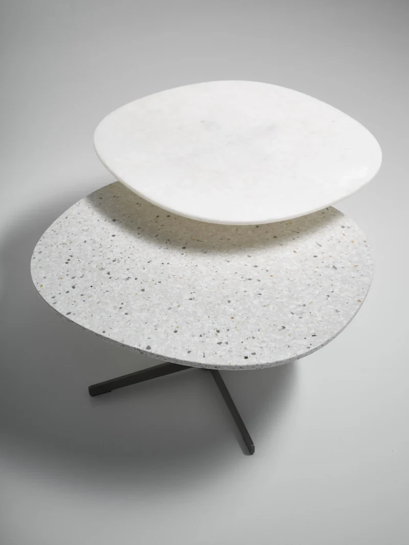 Frost Table is available in three heights: coffee, salon or bistro table, and four patterns: Glacier, Snow, Mid-Grey, and this limited edition Contactlens.