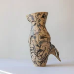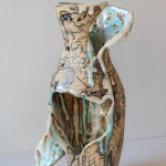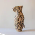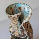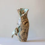 A singular stoneware sculpture by Vale Ro, accentuated with personal formulated glazes designed to evoke the transparency and fragility. This piece was intentionally fractured during the building process in order to expose fissures and hidden interiors, offering a glimpse into the heart of the creation process. Inspired by the delicate balance between creation and destruction, a very often synergy when working with clay. This vase celebrates the beauty of imperfection and the stories told by the unseen.