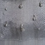 Fruits Of Vulnerability- wall hanging piece, handwoven aluminium wire, with elements of sand casted fruits, is part of an introspective and deeply personal body of work and first solo exhibition of Ia Kutateladze, with the same name, that explores the artist’s more than decade-long battle with an eating disorder. This body of work is a raw and honest expression of self-worth, body image, and other mental health struggles associated with this issue. Seeking to confront and communicate the complexities of their journey, hoping to foster a dialogue about these very often stigmatised issues, to heal through artistic expression.