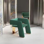 The Futura Chair draws inspiration from futuristic city aesthetics, featuring a clear geometric form complemented by polished metal details. With its industrial undertones, the chair seamlessly integrates into various interior styles, thanks to the versatile combination of fabric and metal that can be tailored to suit both modern and eclectic spaces.