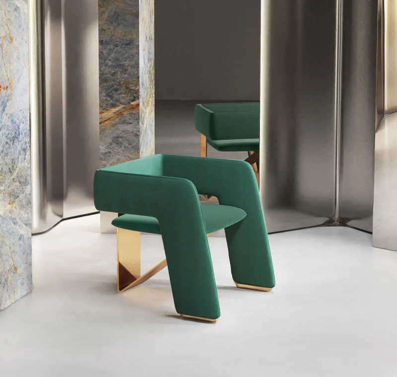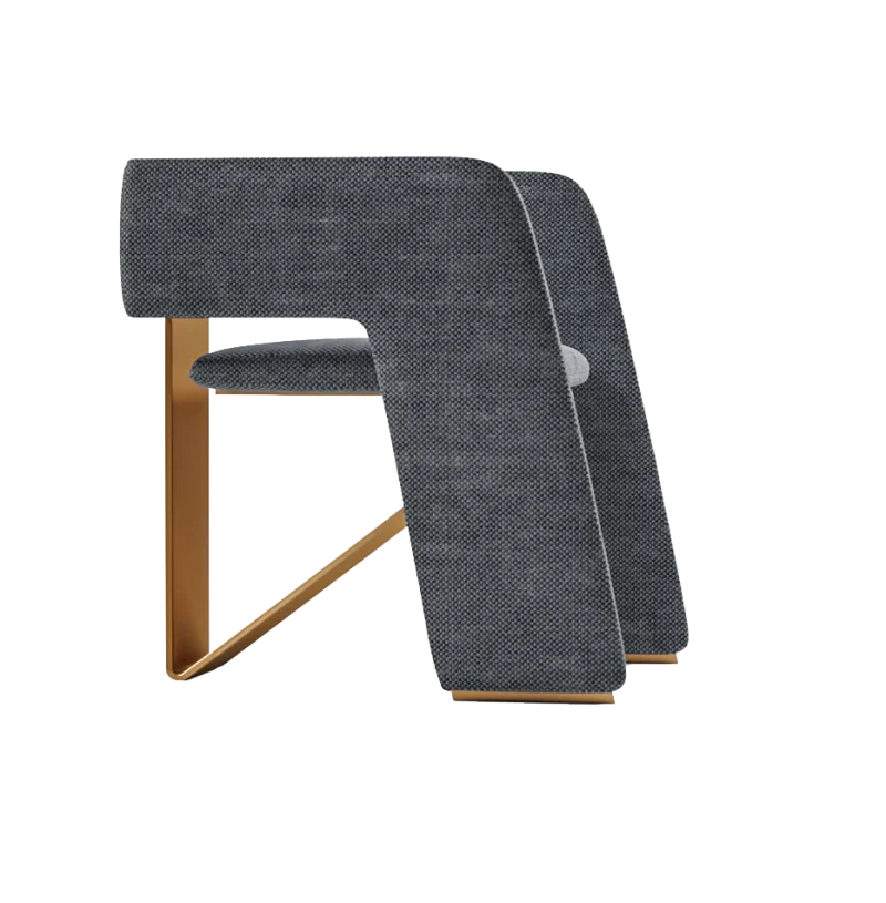 The Futura Chair draws inspiration from futuristic city aesthetics, featuring a clear geometric form complemented by polished metal details. With its industrial undertones, the chair seamlessly integrates into various interior styles, thanks to the versatile combination of fabric and metal that can be tailored to suit both modern and eclectic spaces.