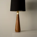 The Space Age was full of terms of the stellar universe to name utilitarian and stylized artifacts that represented the feeling of that time. The Galaxy table lamp is a great example, a solid wood-turned base with a classic 60’s style and brass details that could be reminiscent of a spaceship. It uses a low-watt LED light that lasts up to 18 years and saves 90% of energy consumption.