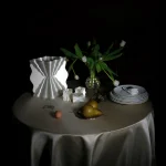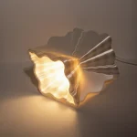 This lamp pays homage to the classic shapes of Greco-Roman cups, associated with the wavy imprints that the sea leaves on the sand as it recedes. Its pearlescent appearance captures and reflects light, even when turned off, giving it a subtle and elegant presence. Each piece is made in France, printed with biosourced material.