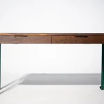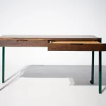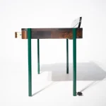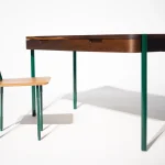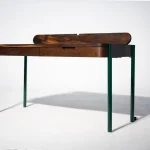 The Gambito Writing Desk by Andreas Anwander is an epitome of meticulous design and functional elegance. Imbuia wood gracefully meets painted carbon steel legs, punctuated by delicate brass details, making this desk not just a workspace, but a statement piece. Its drawers, adorned with carved handles, exhibit softly rounded corners, adding to the desk’s refined aesthetic. Moreover, the desk boasts two seamlessly integrated sockets, each thoughtfully designed with a discreet cable management compartment beneath the tabletop. This eliminates any unsightly wire clutter, ensuring the desk remains as visually serene as your workspace should be. It’s worth noting that all wood utilized in crafting this desk is sourced from certified suppliers, reflecting a commitment to sustainability and quality.