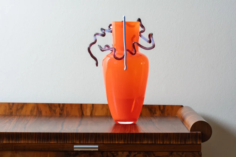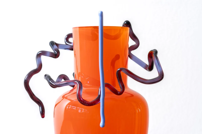 The GARDEN vase is first mouth-blown into a wooden mold made of colored glass. Then it is complemented by a glass 3D drawing, a sculpture by Pavlína Šváchová – made by hand over a burner to the size of the vase.