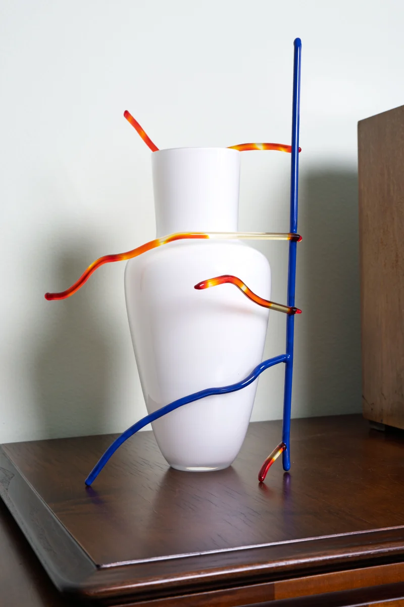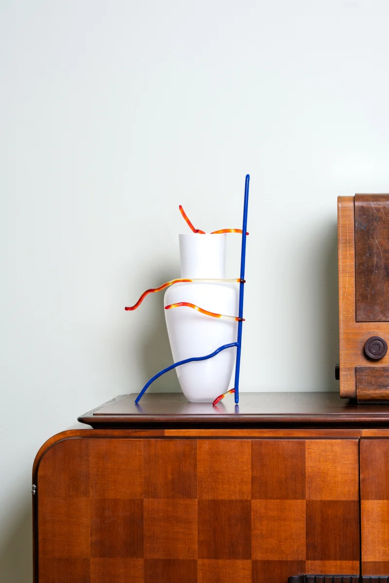 The GARDEN vase is first mouth-blown into a wooden mold made of colored glass. Then it is complemented by a glass 3D drawing, a sculpture by Pavlína Šváchová – made by hand over a burner to the size of the vase.
