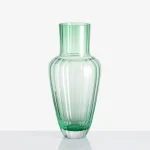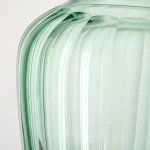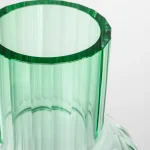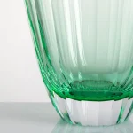 The modern silhouette of the vase in an atypical color alludes to the classic Czech tradition of glass hand cutting difficult patterns into czech crystal glass.