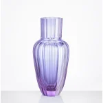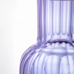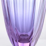The modern silhouette of the vase in an atypical color alludes to the classic Czech tradition of glass hand cutting difficult patterns into czech crystal glass.