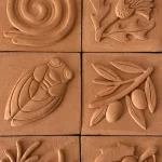 Each one bears a motif drawn from the decorative vocabulary of Provence — olive branches, lavender, grapes, cicadas… patterns once omnipresent in local artisanal furniture, textiles, and objects.
