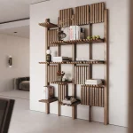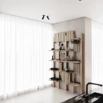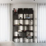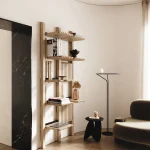 The shelves are made of solid ash blades and can be operated with a single touch, a system of magnets allowing them to stay in a vertical position. Lowered or folded as needed, they come in five widths and two depths. GATE is memorable because of its adaptability, its powerful character and its sharp aesthetics, making it a striking element in every interior.