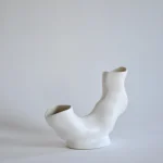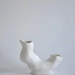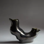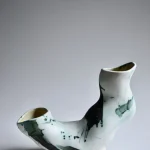 Genie is a hazy form; the pattern of heat at a distance made solid. Created and repurposed from a broken “O” vessel, Genie is erosion as creation– recovery of bisque mishaps to make an intriguing, sylphy shape. As two winding sides of a foggy, wooded valley or the clouds of mist created by the force of a river, Genie rises upwards with charming allure.