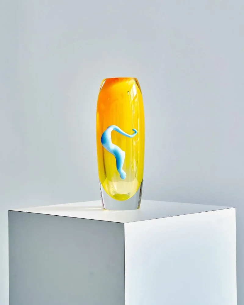 Giovanni Valdeavellano’s work as Studio POA represents a merger, in several ways, of disparate sides of his background — his childhood learning crafts from his mother and engineering from his father, his career spent working as a contractor with an art practice on the side, and his dual identities as a Guatemalan living in New York. The pieces in his new collection similarly hover between the gestural qualities of art, the technology of 3-D rendering, and the craft of sculpting materials like ceramic, glass, wood, and sand by hand.