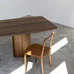 The “Gi Chair,” unveiled at the MÃOS SOMA collective during São Paulo’s 2022 Design Week, embodies minimalist elegance. This chair’s design focuses on the seat, crafted solely through traditional joinery. Its slender, rounded frame pushes the boundaries of minimalism, resulting in a light and refined aesthetic.